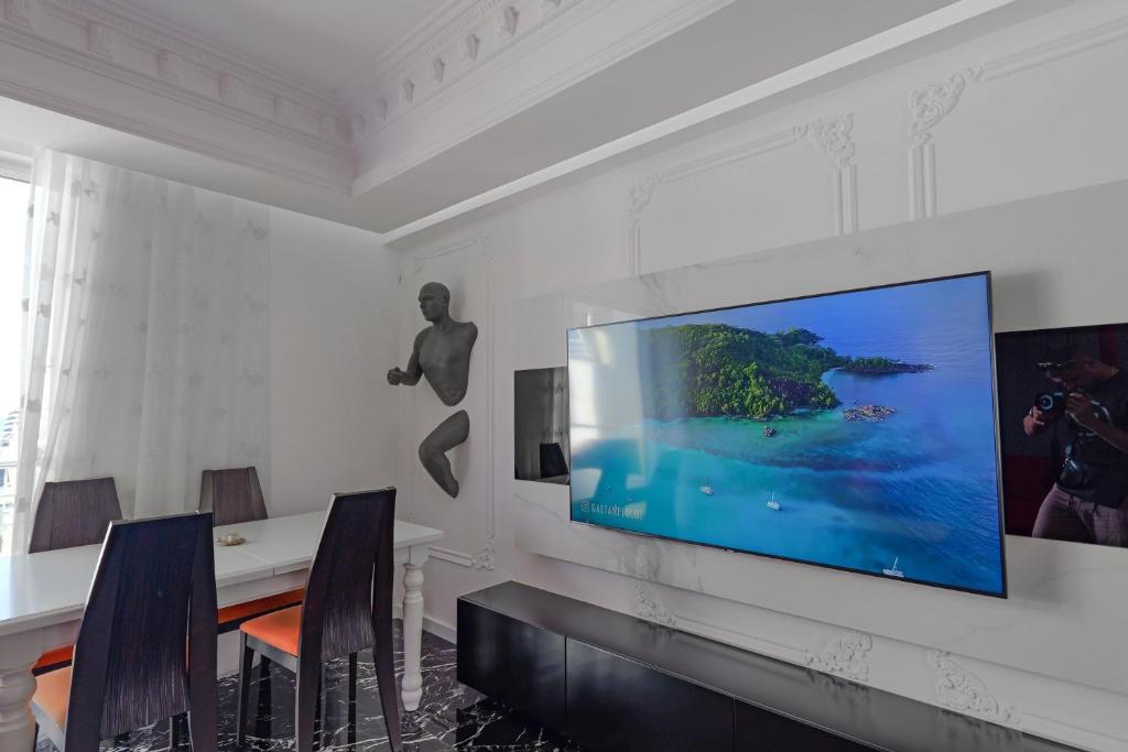me kanale satelitore, një zonë të ngrënies, një kuzhinë të pajisur plotësisht dhe një ballkon me